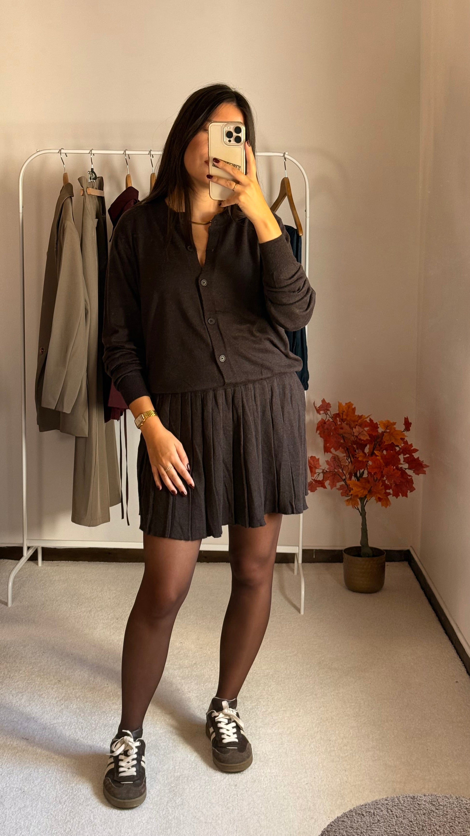 La jupe est à taille élastique. Le modèle porte une taille S/M et mesure 1m63.