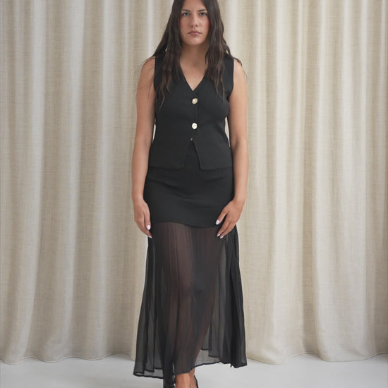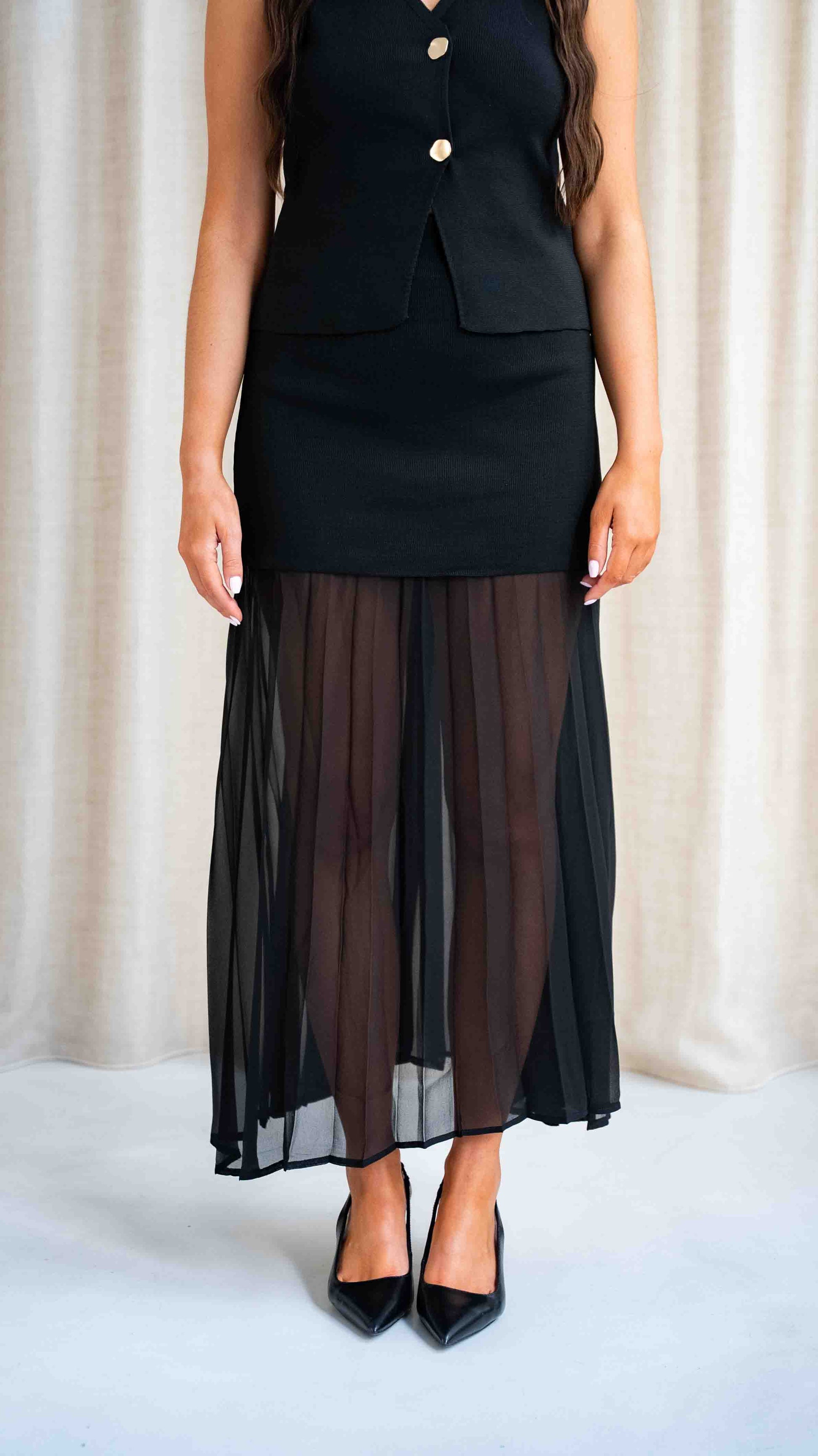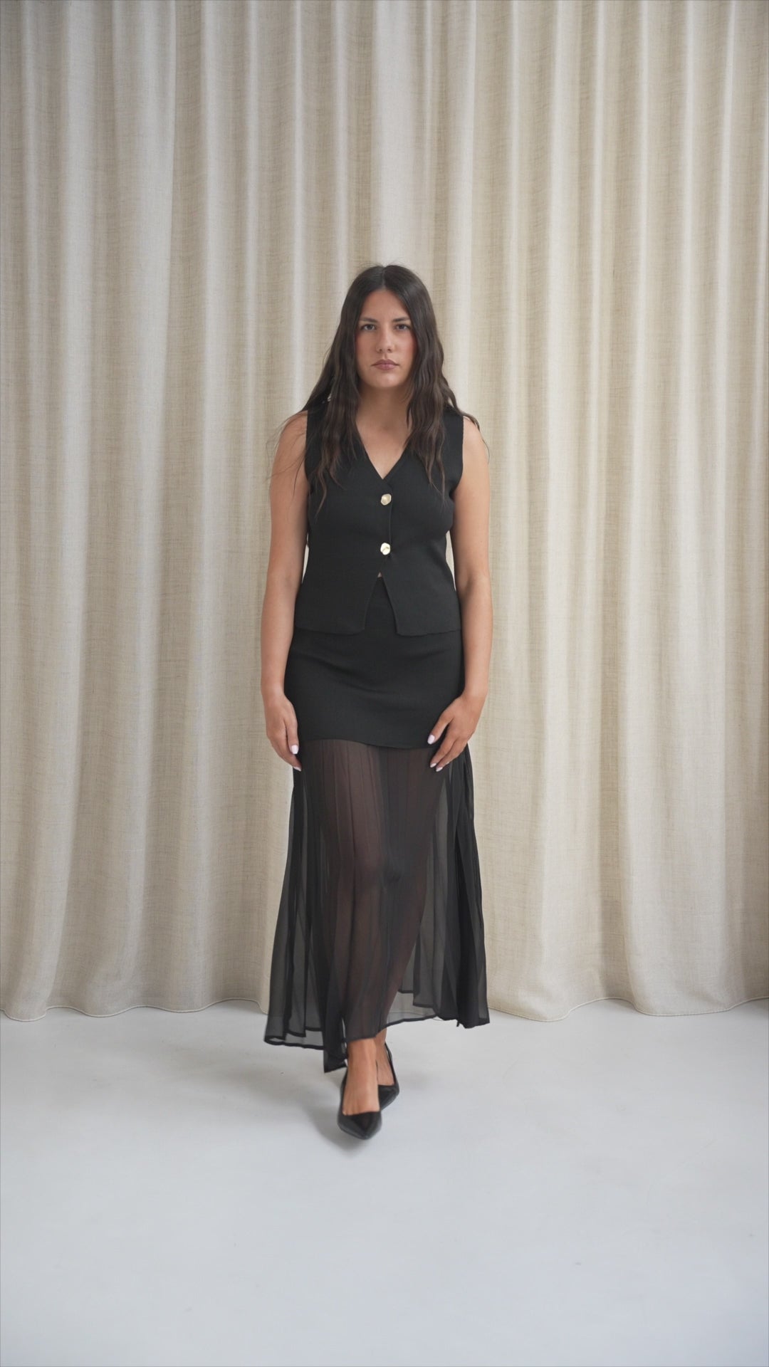 Le modèle porte l’ensemble en taille unique (équivaut à un S/M) mesure 1m63 et porte des talons de 7cm.