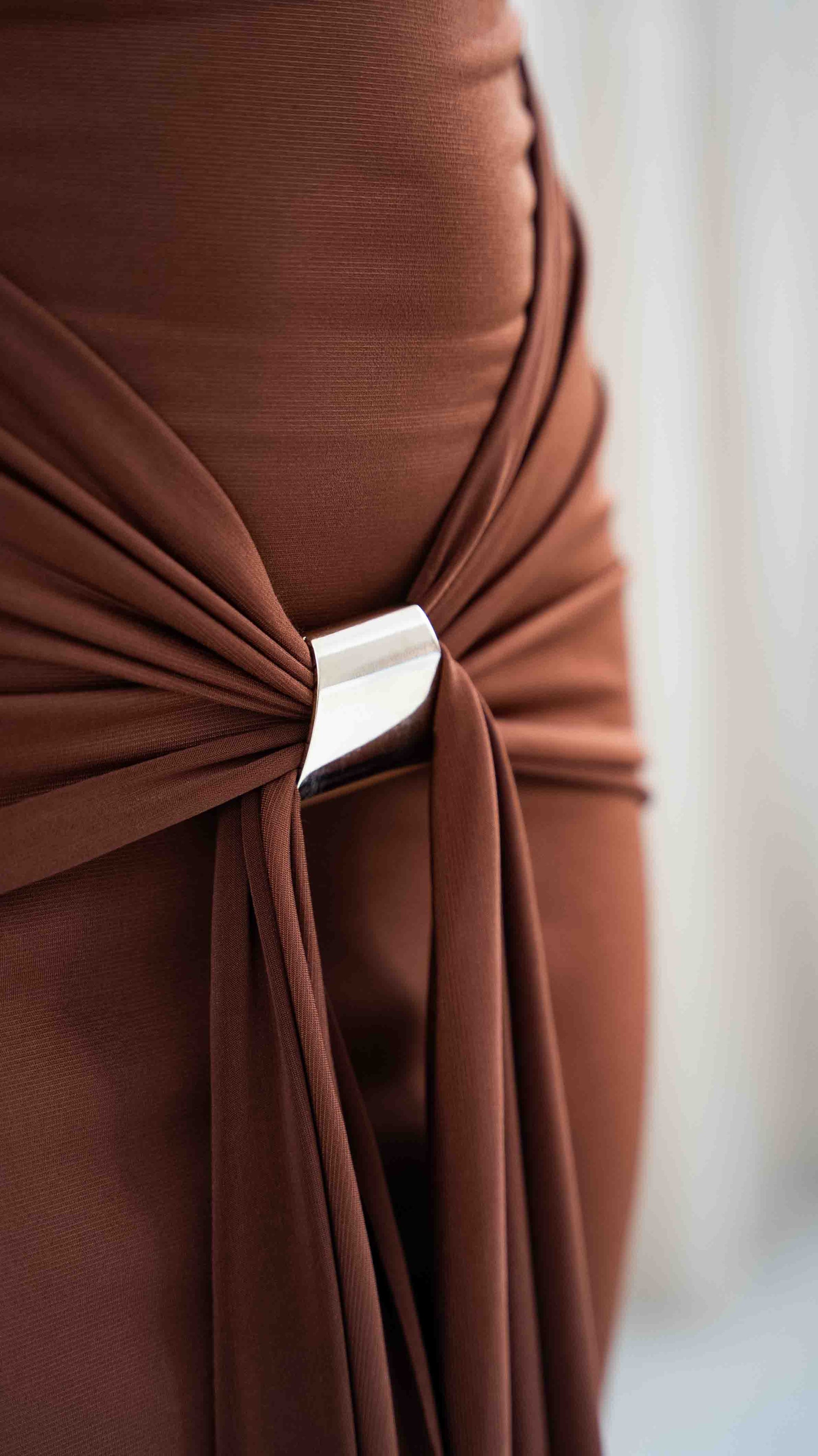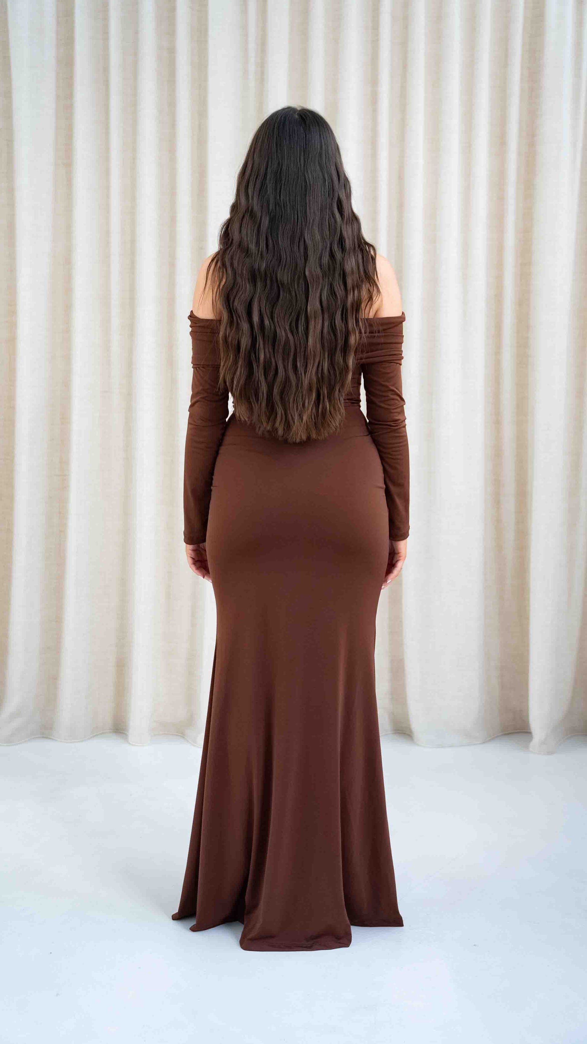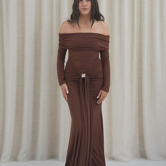 Le modèle porte la robe en taille S, mesure 1m63 et porte des talons de 7cm.